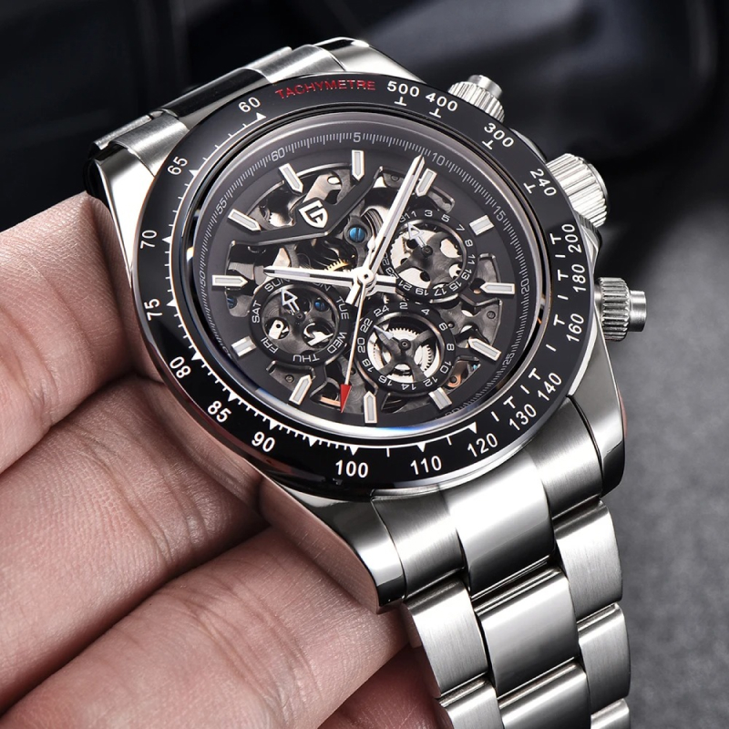 This men’s mechanical wristwatch is not just a timepiece; it’s an expression of sophistication and performance. Ideal for daily wear, it’s designed for those who appreciate the finer things in life. Whether you’re in the office, at a dinner party, or on a weekend adventure, this watch complements any outfit, effortlessly merging fashion and function.