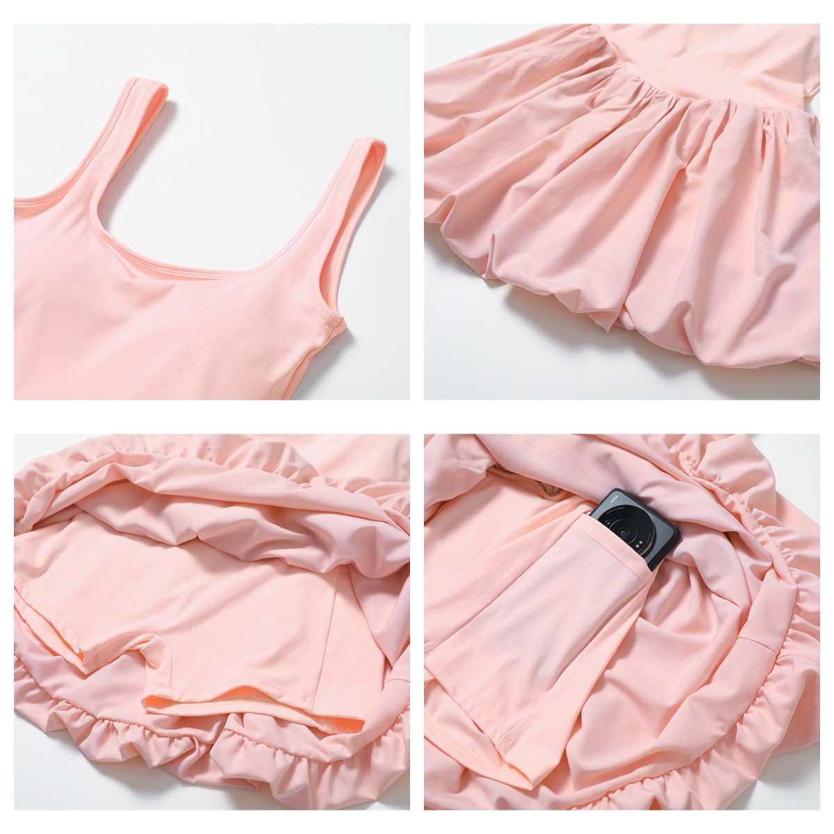 Whether you’re running, lifting, practicing yoga, or playing tennis, this jumpsuit is made for movement. The sporty design with a built-in tennis skirt adds a touch of femininity while providing the coverage and flexibility needed for dynamic activities. Wear it for: